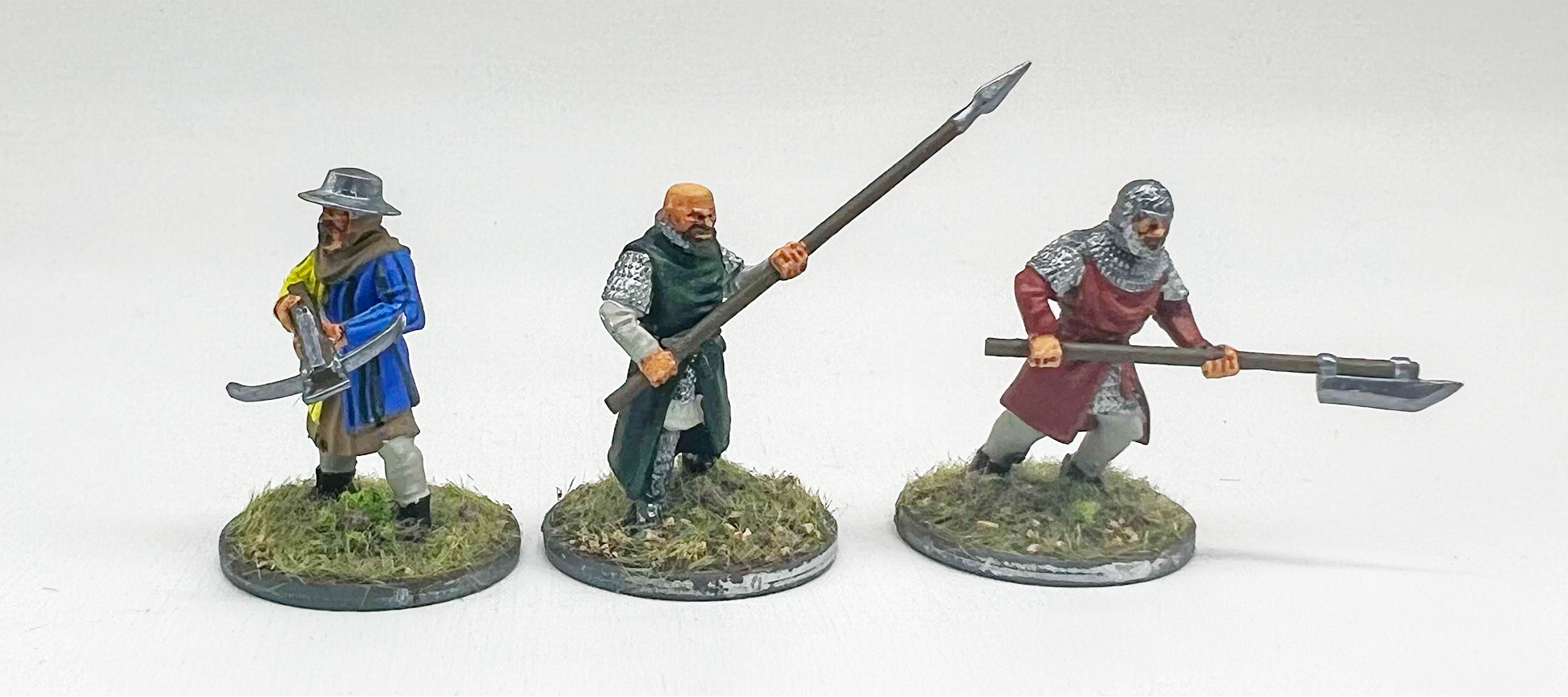 The kit paints up very well. The cloth textures are sharp, giving nice guides for highlights and bits for contrast paint to flow into. The mail and quilted armor textures are great as well, with no soft detail that you have to try to add in yourself with shading. Some of the faces are a bit soft, but they’re really hard to see under helmets and hoods for the most part.
