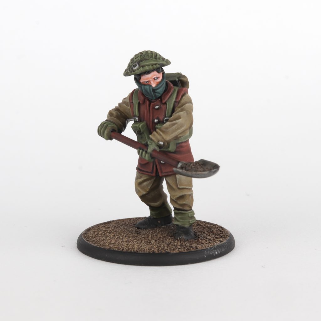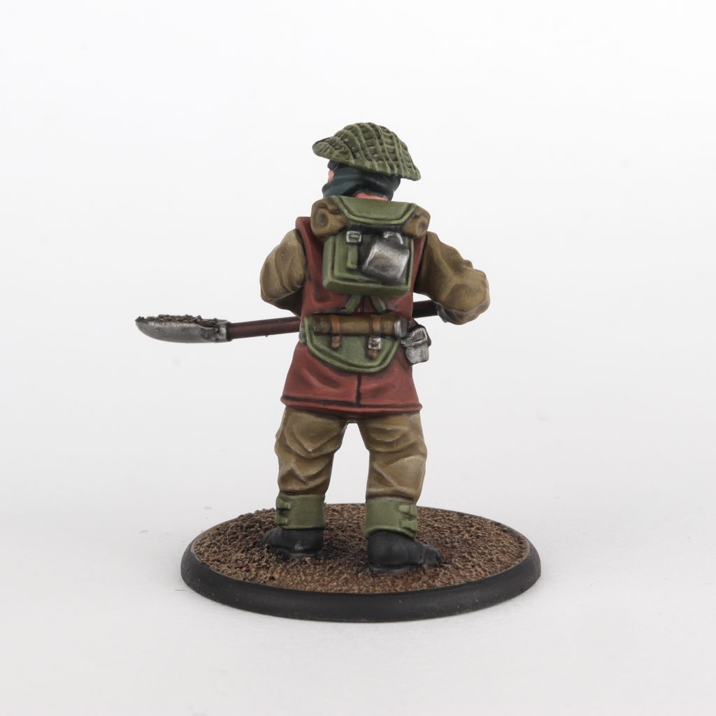 Credit: Momma NeganThe video tutorial uses a British soldier in summer uniform, but since I did not have any I decided to use the new winter Brits (Disclaimer: I was sent this kit for free by Warlord Games). This went surprisingly well, I only really needed to figure out a recipe for the vest and scarf on this guy; luckily the Commando Green and Rifle Brown are perfect colours for that purpose.