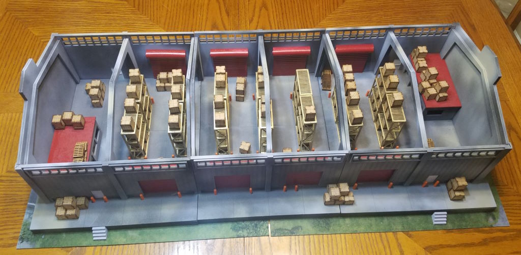 The Dockside Warehouse by Phalanx Consortium. Painted by Michael O "Mugginns"Here you can see it with all the garage doors installed. There are strips to go along the sides of the middle piece to cover the seams but again, I’m not bothered by it.