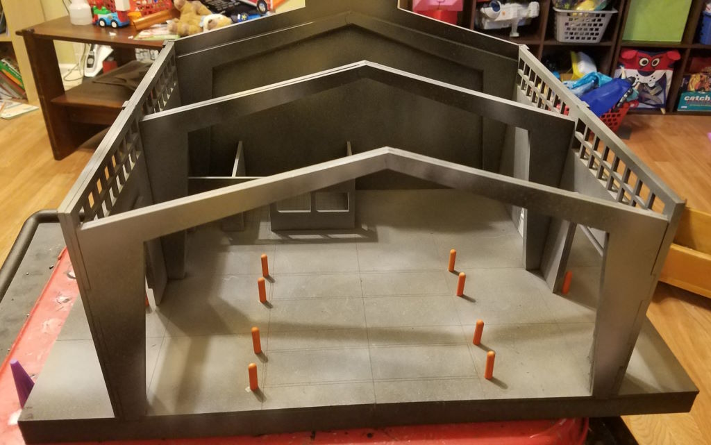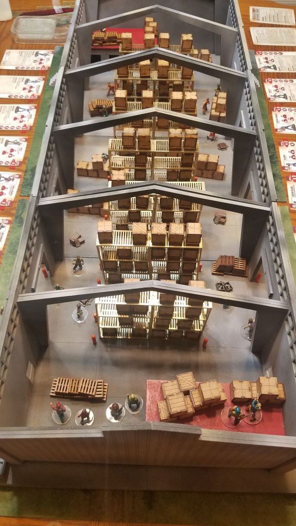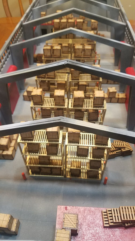 I didn’t glue the barricades down, so they can be put anywhere in the warehouse, including on top of the office where a sniper can cover his group members.