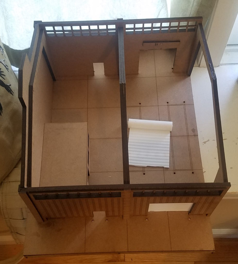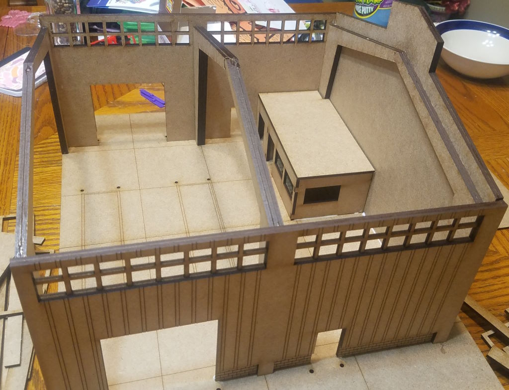 The Dockside Warehouse by Phalanx Consortium. Painted by Michael O "Mugginns"It’s pretty simple to get it finished the way I did. The doors for the office didn’t fit without a shim so I’m going to do that one later. You can see the cutouts where the shelves will go.