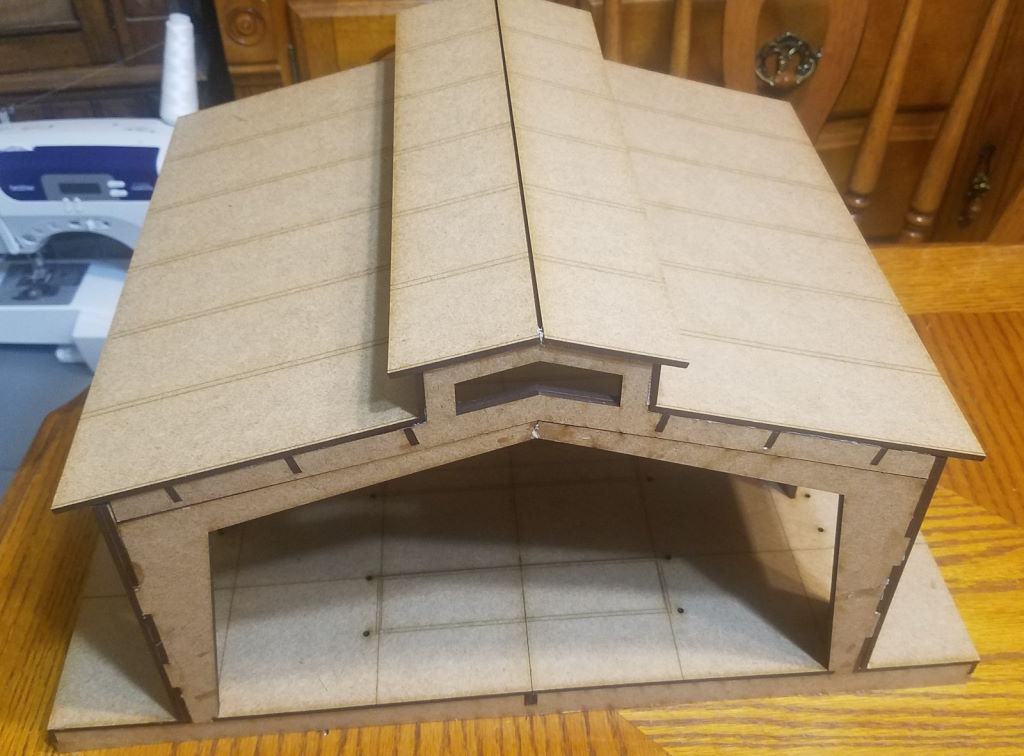 The Dockside Warehouse by Phalanx Consortium. Painted by Michael O "Mugginns"Here you can see it from the end, and how the roof sits on the supports.