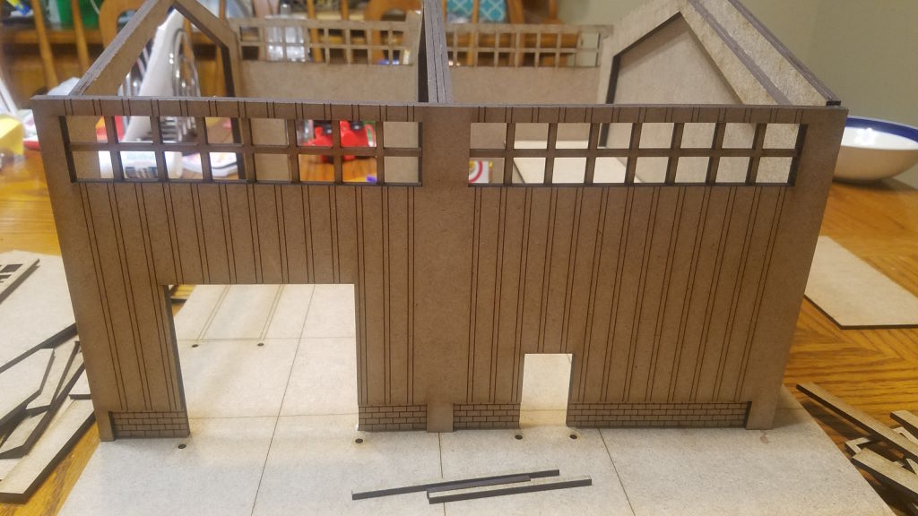 The Dockside Warehouse by Phalanx Consortium. Painted by Michael O "Mugginns"There are two end sections that are identical and one middle section to go between. You could definitely just use the two end sections if you wanted a smaller warehouse. There are magnets that are included so you can put the garage doors on and off easily. My resin doors chipped a little at the bottom when I cleaned flash, but I was able to file them down (with a mask on) and they’re fine.