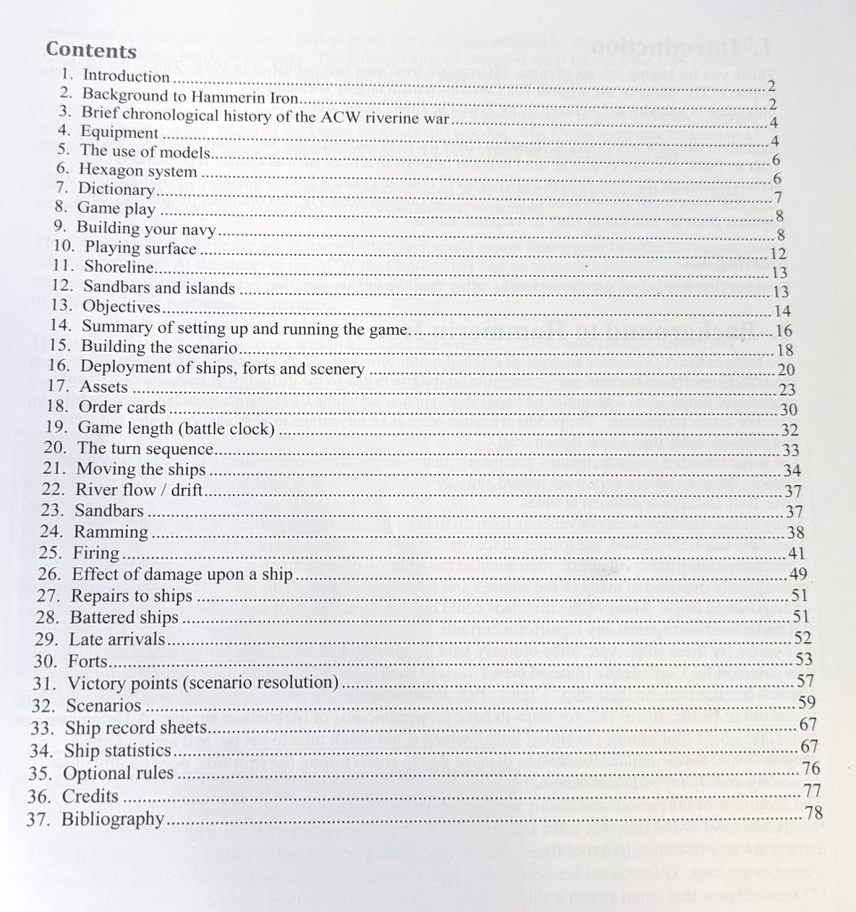 Hammerin' Iron ContentsThe rules, with scenarios and everything, come out to about 80 pages - but the pages have bigger margins and that does include ship stats so I wouldn't be intimidated. There are also a fair number of optional or circumstantial rules.