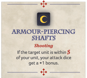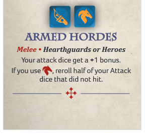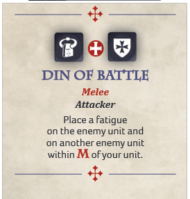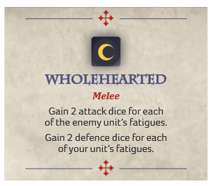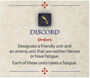 Possibly the single ability which has changed the most across SAGA FAQs? - What changed in the 2024 FAQ: The author assumes you've played Moors with their 2021 FAQ update (yes, 3 years between FAQs), so won't waste time going over old history. Essentially, the Moors lost a bit of flexibility with this update; Discord can only be used on 1 enemy and 1 friendly unit now (rather than up to 3) and Wholehearted is now melee-only, instead of shooting. They're still worth playing, but you're definitely playing a 'finesse' faction.