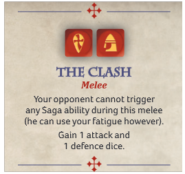 Finally, you've got a great ability in The Clash which lets you call a halt to the SAGA abilities phase of a melee - effectively stopping the opponent from playing any more abilities! Very useful when you're the attacker.