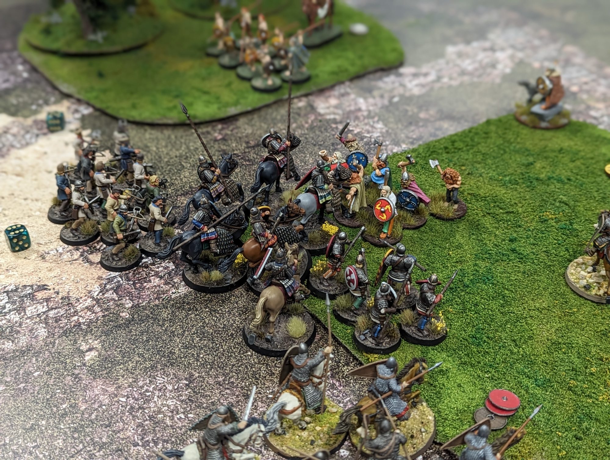 Rus Hearthguard (mounted) clash with Viking Hearthguard on foot. Thanks to their completely different battle boards, the two factions' Hearthguard will play completely differently, each with access to distinct equipment. (Credit - Goremaw and James TIlsley from the London SAGA Mead Hall)Plastic Viking minis are easy to find from major companies, and their pewter companions are one of the minis that basically every historical manufacturer makes. There is a massive variety of minis to choose from to play Vikings.