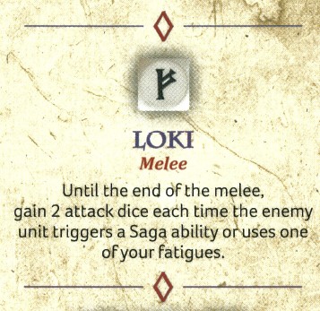 Viking Loki ability. Credit: Studio TomahawkYou can also load yourself up with some Fatigue, charge into a key enemy unit with some Warriors, and then dare them to use your Fatigue or their own SAGA abilities if you have Loki queued up. I find myself using this a lot; it's a great counter and makes the enemy feel bad for doing their own stuff. It's another good way of shooting off a suicide charge with some Warriors.