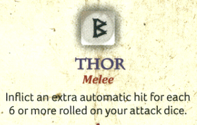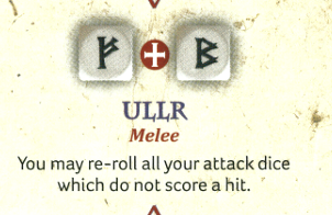 Thor ability. Credit: Studio TomahawkSpeaking of Thor, for one common this is again a huge force multiplier. When combined with Ullr, you'll re-roll misses attempting to get that 6 and get more hits. It's a large investment - three dice for one fight - but if you really need to one something you can virtually guarantee that you do.