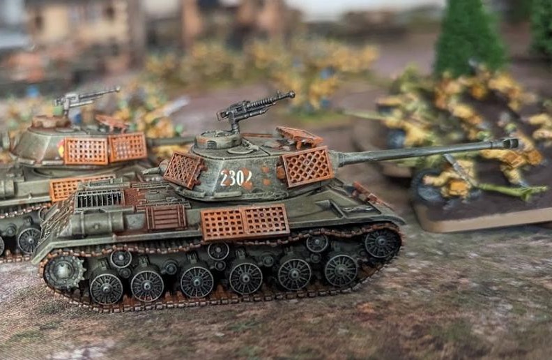 Battlefront IS-2m with a bedspring that's fallen off. Credit: Matthew 'chimp' WardIt helps that the IS-2 is lovely looking machine, particularly the 1944 model’s more sloped glacis, and you can go wild grubbying the models up to look appropriately well worn. Battlefront are also happy to sell upgrade packs to represent bedspring armour, which is perhaps of dubious practical use in the real world, but really sells that end of the war street-to-street fighting look.