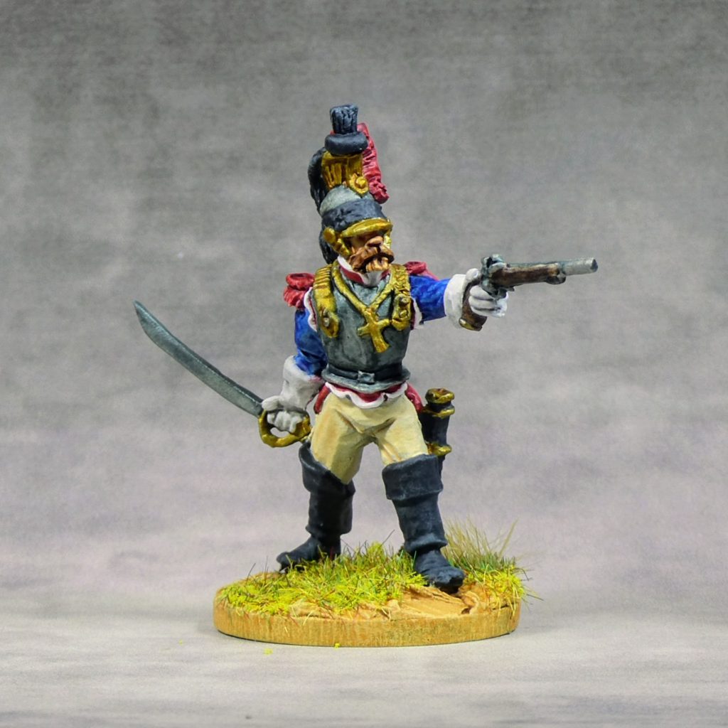 A French heavy cavalryman. Credit: John EAfter you shoot, you have to reload as an action. After being shot at, you can choose to dive for cover (Move 2" in any direction) or Return Fire (immediately make a shot if loaded). After you fight in close combat, your opponent gets a chance to do so if they like (or retreat) and both minis get a Fatigue marker. Fatigue makes it harder for that mini to hit this turn as well as makes it easier for them to be hit (by one for each fatigue).