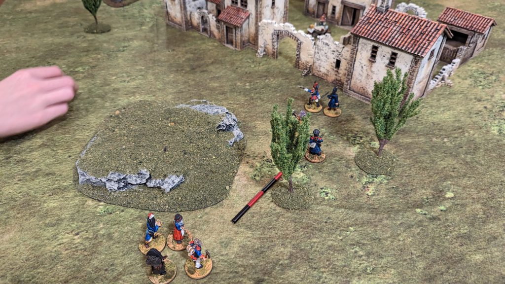 I played six games of Silver Bayonet using the basic French and Spanish warbands from North Star. At first I was a little peeved - it seemed with enemies largely having defense of 13 and 14, and my guys having +1 accuracy or melee (some rarely having +2), it would be very difficult to hit anything. There is no aim or bonus to shooting in the game, so you can't tip your results like that. I did find that after playing it wasn't as bad as I thought. You can re-roll - usually if you have one die that is high, you can re-roll the other to confirm a hit. Or you can engage in close combat, fatigue the enemy, then shoot them with their lower defense.