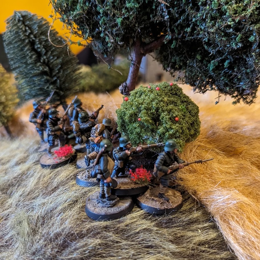 Early on, the Germans have the famous spikey pickelhauber (if you’ve ever seen a plague marine, you’ve seen a pickelhauber) and later the classic stahlhelm most people know from WW2. They also wear the classic 50 shades of feld grau (field grey), with variations in trim and etcetera, so you can argue over that for hours if you want (or don't).