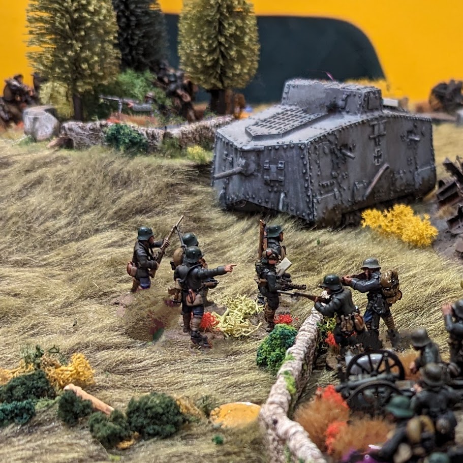 It does help to have these terrain pieces in your collection, after all, one of the unique and interesting facets of wargaming the Great War is that you can explore the ‘defense in depth’ tactics that were used and spice up your tables with these fortifications. However, you really don't actually need to. For example, by 1917, the main battle zone of the German defensive system was not in fact the trenches. Rather, the few miles of country which lay behind the trench lines was. This ground, unseen by Allied artillery observers, was enfiladed by machine gun nests and swept by artillery fire. The German operational mantra was to counter-attack quickly and violently, so something which looks essentially like a meeting engagement is not at all off the cards. Also, by the end of 1918, the Allies had more or less broken through in several places - see Myth #1.