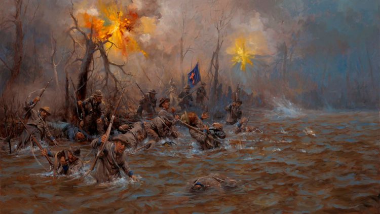 Painting by Andy Thomas depicting the Orphans assaulting Federal lines at Stones River.So why paint and play with the Orphan Brigade? They weren't necessarily an elite unit, but they are different. They have an interesting story, being a brigade that couldn't recruit replacements nearly as much or take leave to go home. It is useful to paint units from the western theater, as much of the focus in wargaming, especially on the Confederate side, is on the east and the Army of Northern Virginia. Their uniforms differed greatly from Eastern armies as they wore grey wooljean with blue edges to their sleeves and pants. They provide an opportunity to model not just mounted troops, but mounted infantry, which doesn't get as much attention in wargaming.