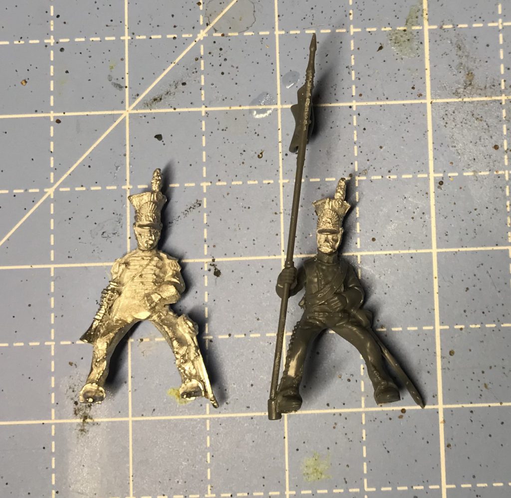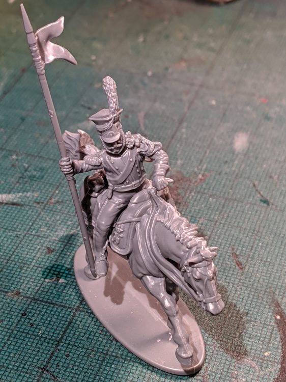 The Victrix Guard Lancers are one of the nicest kits out there, and have the right basic uniform, but they’re very much – and very clearly – Guard Lancers, with prominent braiding, fancy shabraques (the pointed saddlecloth) and epaulettes, all elements I would have to remove to pull off the Berg Lancers in their battered post-Russia 1813 form. The Guard Lancers will have to wait for another project, and I’m looking forward to that one too!