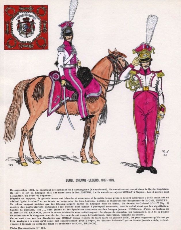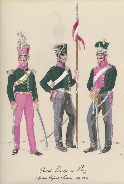 Noted Fancy Man Grand-Duke Marshal Joachim MuratMurat never really bothered with actually going to Berg, so his commands are infrequent, contradictory and overlapping, upping the pay to Guard levels, commissioning an even nicer uniform, paying tailors and artists to start working on a third uniform design and doing all this from a lounge in France. At some point, they transitioned from Light Horse to Polish-Style Lancers, picking up the Polish Czapka along the way. By 1808, two years after the idea popped into his curly haired, almost completely smooth, brain the Berg Light-or-Lancers were on their way to Spain. 200 men sharing 50 horses.