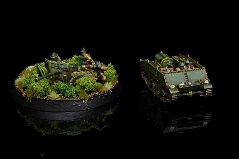 Loyd Carrier. Credit: RockfishThe 6pdr itself only has the choice between being towed or set up, and the crew options are only okay. You get a choice of airborne or basic infantry guys, where each has loader(s), a gunner, and a commander. You get a few extras that go with either crew, a pile of shell casings, and some ammo crates. This means that you are probably going to see some repetition amongst your crews, but you can probably leave a few of the distinct options aside or take some suitable models from the infantry kit. I will also make a minor comment that the crew have camo netting helmets unlike the existing infantry, which might dig at you from the inconsistency point of view.