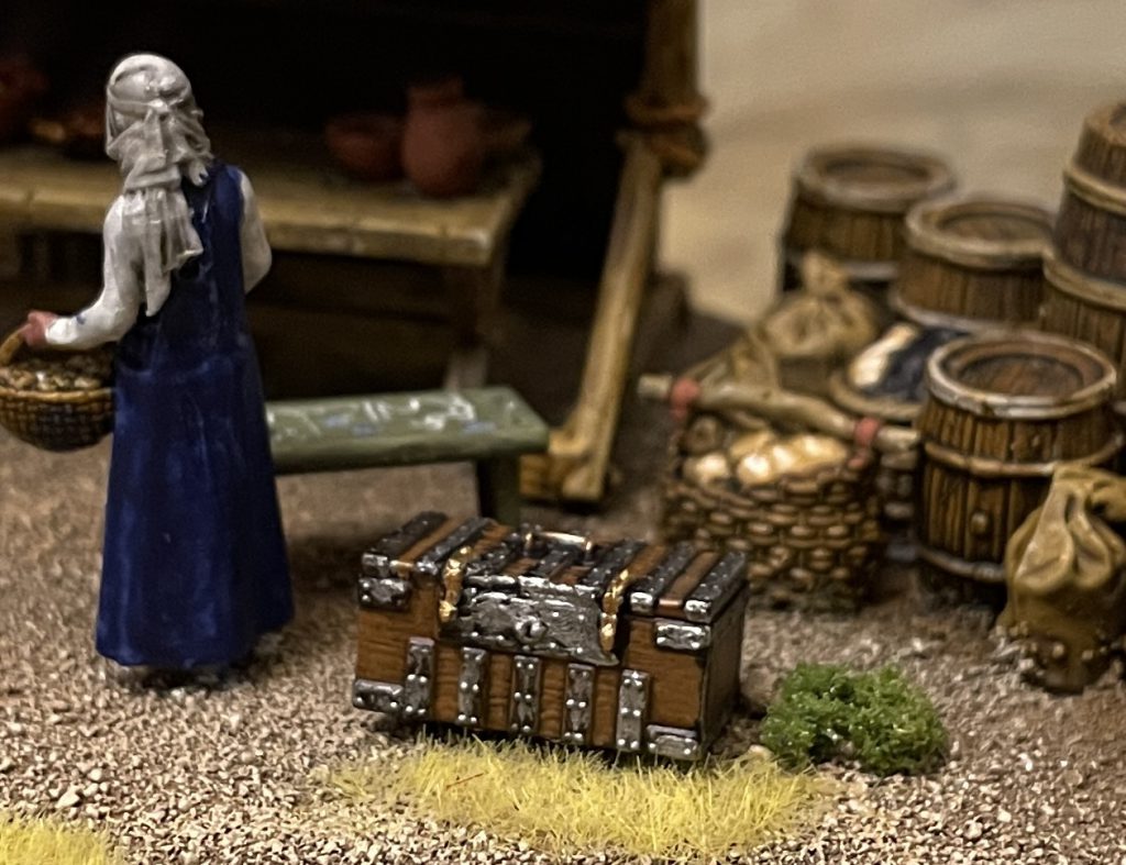 At £20 this is a cheaper proposition than the Market Stall set, and will be a tempting addition to any other purchases. It's as nice as you'd expect it to be and TTRPG players - among others - will see this as a nice, quick purchase for cluttering up your dungeons and churches with chests, icons and gold. Pillage and other early Medieval historicals are a given, but this set will fit out churches all the way up to the modern day. Burrows and Badgers and Carnivale players will probably want to get the chests (live your Ezio/Redwall fantasies) and I doubt there's anyone playing anything that wouldn't benefit a sprue from this set. It's a fantastic set to split and I think the best route for this one is to buy a bag between friends - parcelling out what you need for loot tokens, set dressing and scenics. If, however, you want to load up your tables with treasures and archaeologically accurate chests with the contents of an entire bag, shine on you oðr gimsteinn.