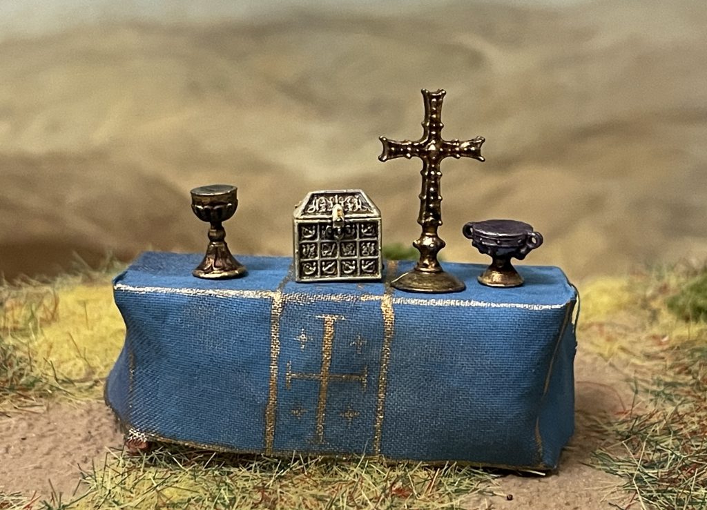Victrix Treasures and Chests, credit: LenoonTo display the set for photos, I combined it with a few tables from the Marketplace set, with a home made altar cloth (painted silk) to give a suitably grandiose setting for the religious pieces!