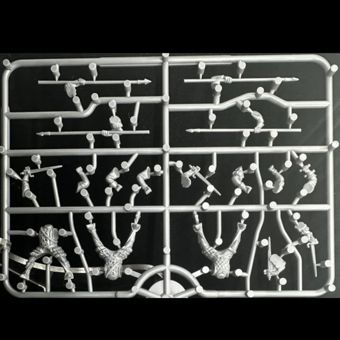 Photo by Wargames AtlanticThe heads and shields are all included in each box so you can mix and match them quite easily to get a little extra variety. Note that there’s only one arm with straps for holding a shield per sprue, so you’ll need to glue shields to arms without straps to complete a full unit with shields.
