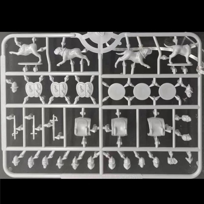Each box comes with components to make twelve 28mm cavalry models with a variety of equipment options and eight dogs. Like the earlier Conquistador kit from WGA, there are no bases included in the box for either the horses or dogs.