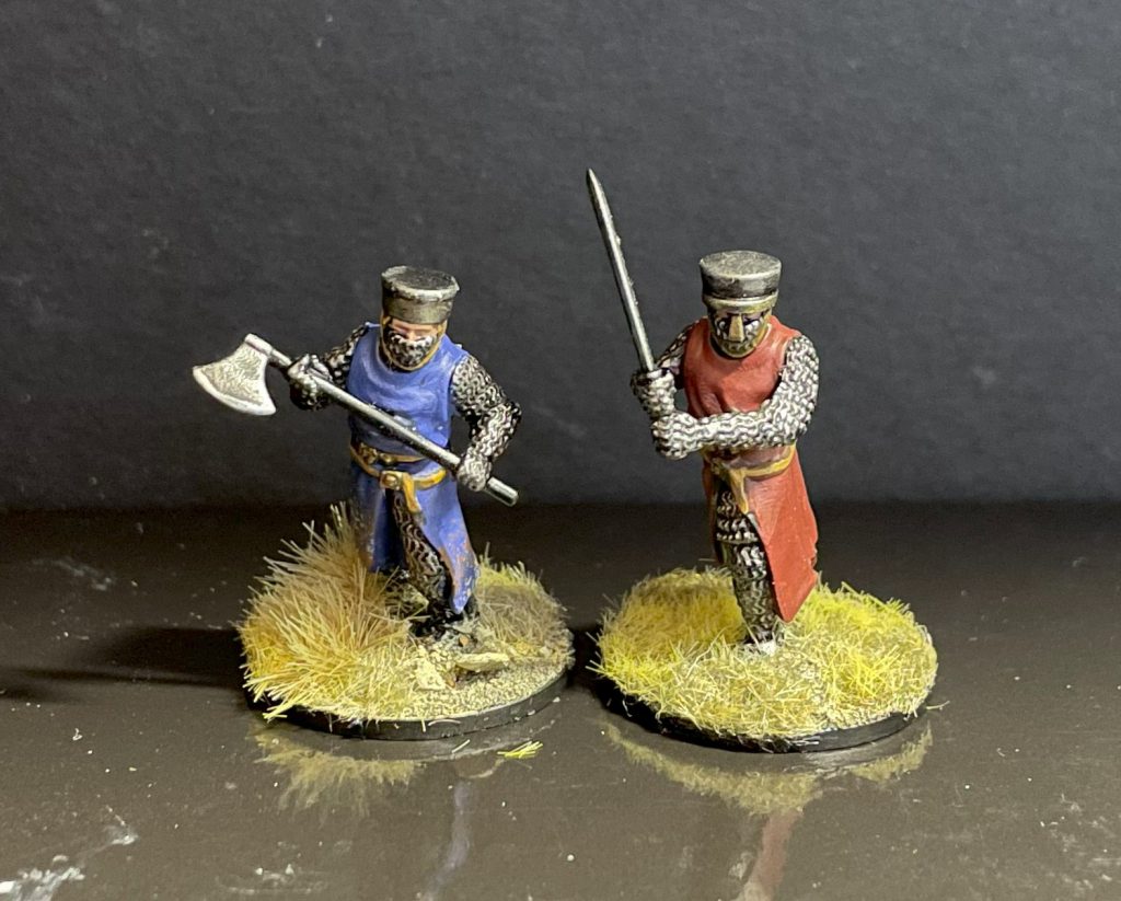 Two Handed KnightsChainmail is often where plastic kits fall down, as shallow detail defeats easy wash and drybrush, but that wasn't the case here. The mail textures are just deep enough for a basecoat, black wash and light drybrush to pick them out and that's great - no need for individual ring highlighting, or worse, to paint on mail texture where casting has smeared the texture over the component.