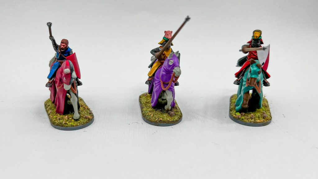 Assembly is pretty straightforward, with only a few spots where the lack of instructions gave me pause. On the horses, the heads and their reins are two pieces that are meant to go together, so you need to make sure to pay attention to the numbers on the sprue and match them up. Head 1 goes with reins 1, and so on. The soldiers are totally standard for historical kits, just flat arm and head connections that allow you to get a nice range of poses. The one tip I have is that you should try to put the soldier on the horse when you’re posing and gluing the shield arm. I didn’t bother to do that and as a result, some of the shields on my models are held a bit awkwardly to avoid butting into the horse.Painting is straightforward as well, if a bit time consuming. Just as a practicality I had to paint everything in three different sub-assemblies: horse, rider, and shield. There are no details in annoying places, everything is easy to get a brush on. The sculpts have some nice details, especially on the faces of both the horses and the riders, giving you a lot of nice surfaces to work with and make highlighting easy. The only part of the model I have any complaints with would be the riders’ feet, the straps, boots and pants all run into each other and aren’t crisply separated by the sculpt, making it a bit hard to really see what you’re doing. Luckily it’s just feet so nobody’s really going to be paying attention. It’s also pretty hard to get basing material under some poses of the barded horses, so I’d recommend painting the integral base a dark color so that you can’t really tell there’s nothing under there if you miss a spot or the basing paste shrinks unexpectedly.
