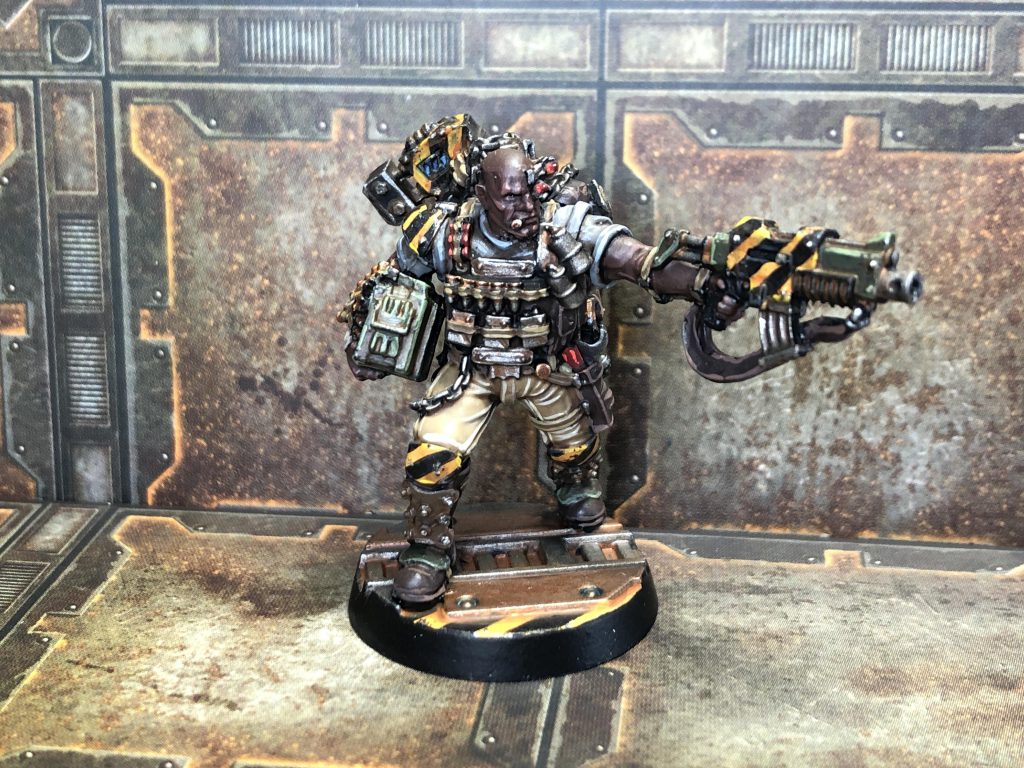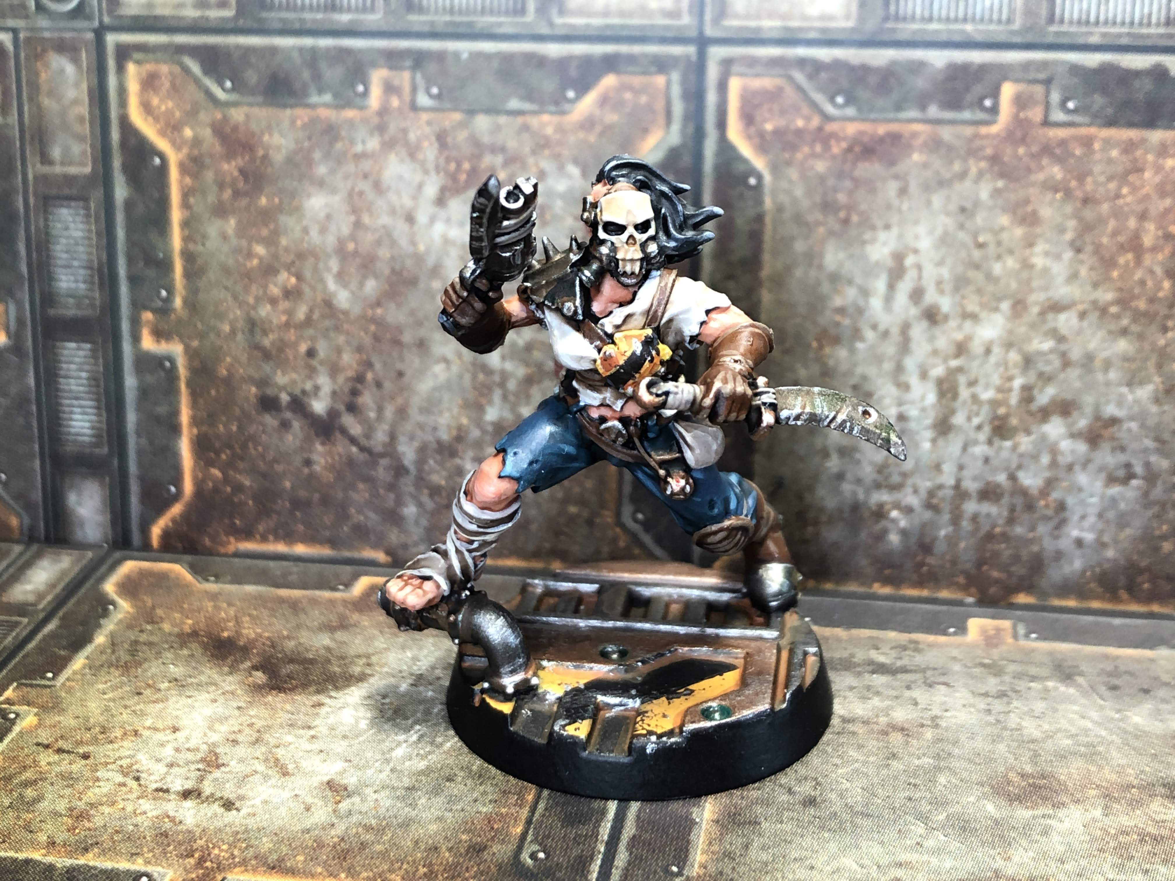 This guy rules. There's something so straightforward about the model's design, and I've been excited to paint him ever since he got revealed. I didn't want to repeat the mistakes I made on Ragnir, so I kept his color palette much more restrained. I went for a gritty, early-mid-2000s FPS protagonist look to the model, like we were past the period in shooters where the characters just quoted action movies and instead said "shit" a lot. He painted up real quick, even if I couldn't help myself by putting caution stripes on every flat surface. I think I knocked him out in an afternoon. Also, unlike a lot of Necromunda models, this guy might actually see regular campaign play!