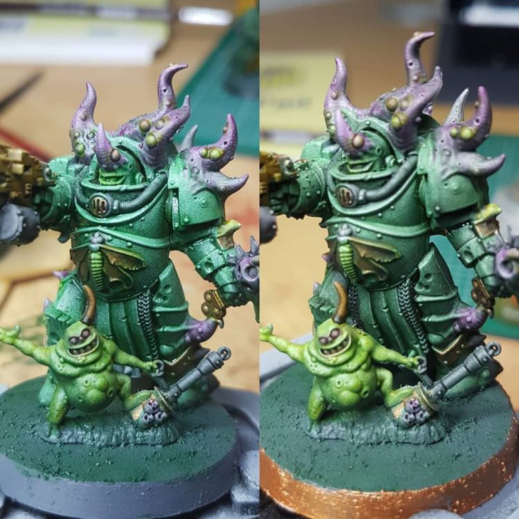 Sadly I've managed to hurt my back during all this which means I can't sit at my painting desk for very long so I've been slowly chipping away at my Chaos Lord in Terminator armor that Wings told me I had to have.
