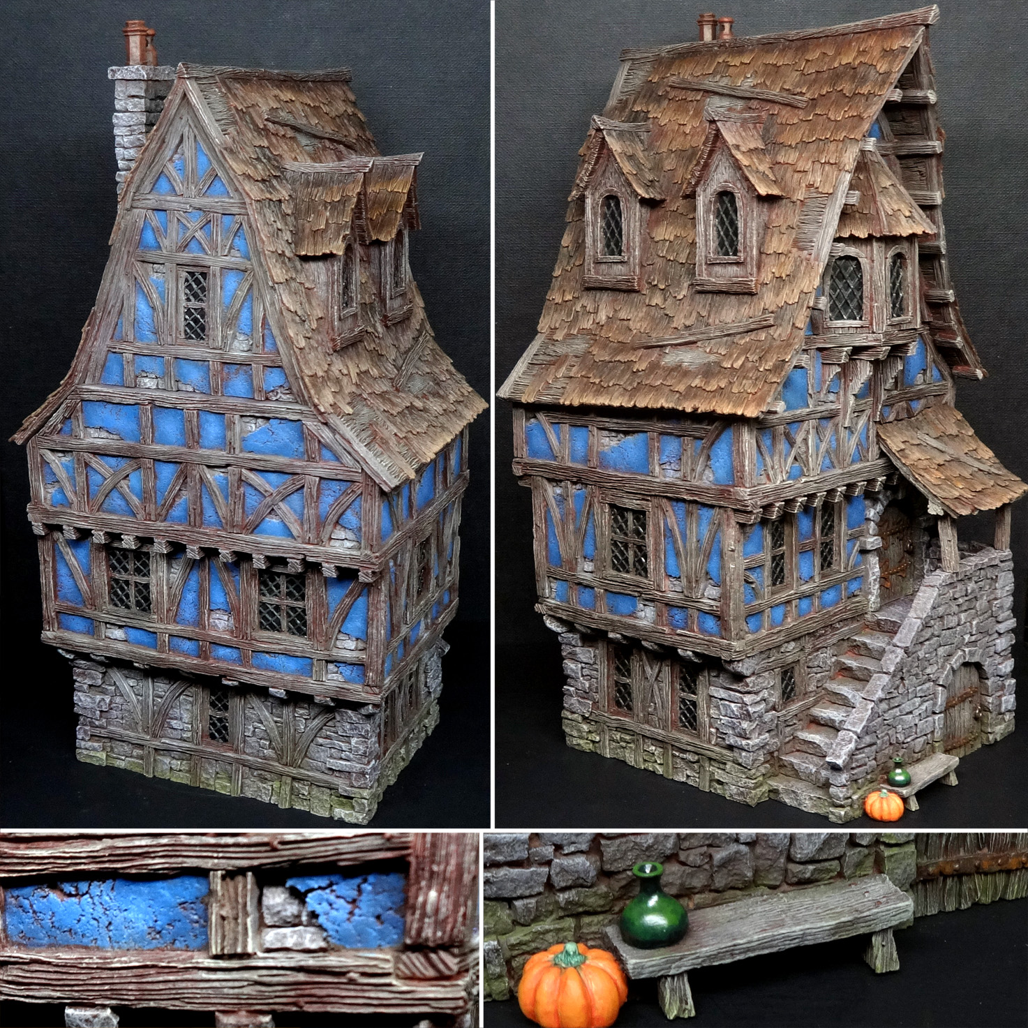 Finally, returning to the Old World after years of neglect prompted me to haul another kit out of my Cairn of Opportunity, and have a crack at Tabletop World's Townhouse III. It's pretty, and it's got a pumpkin. I love these buildings… and so do drybrushes.