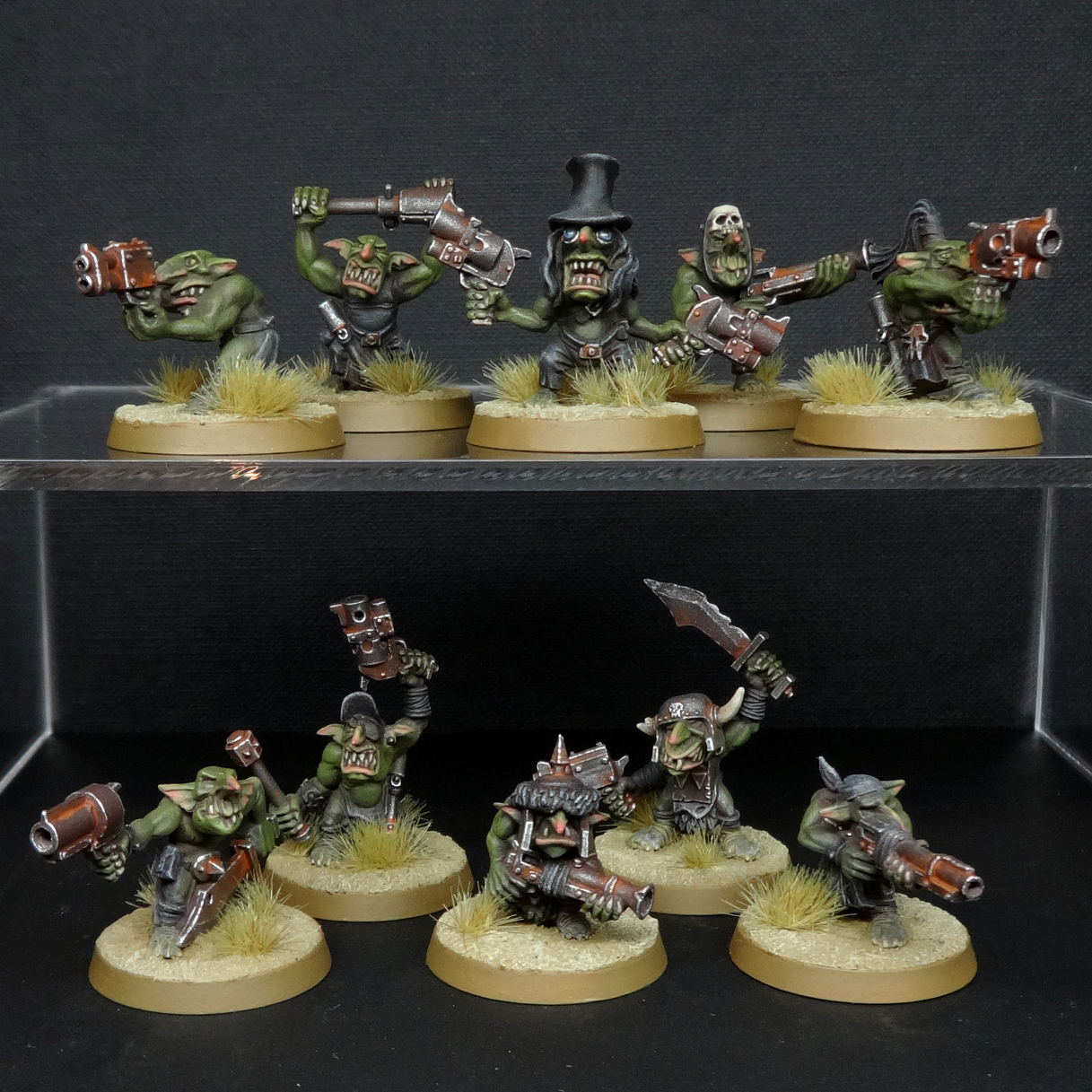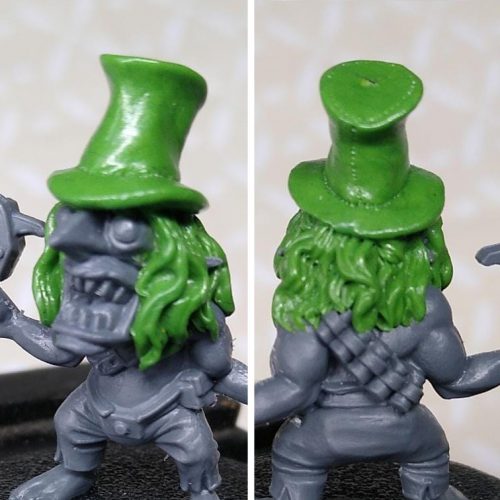 April was a month of inane firsts for me: sculpting a top hat, and painting a pumpkin. Why the top hat? Because my Goff rokkers have accrued some fangrots wearing sweet merch, that's why. I picked the grot with goggles for (I hope) obvious reasons, and executed what is, arguably, an OTT conversion for a five point popgun-toting shitstain.