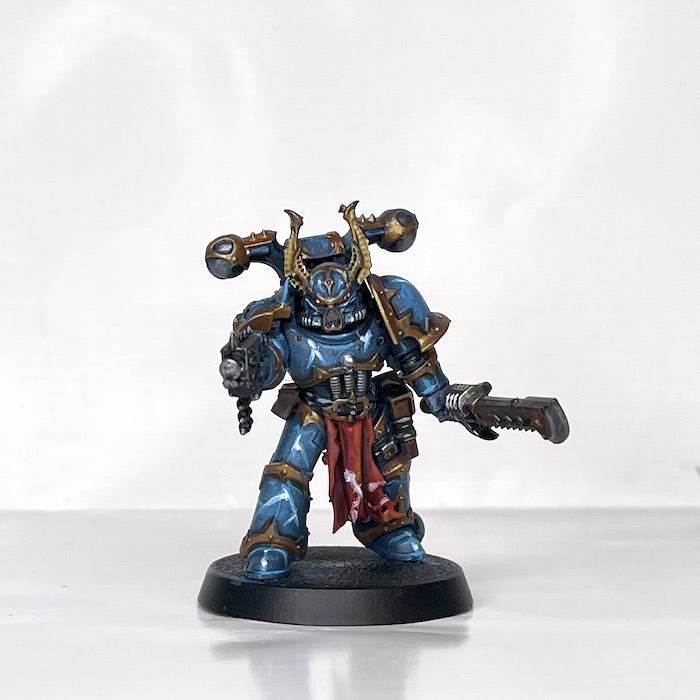After spending the weekend on that model, I looked wistfully at the 2020 Chaos Space Marine Battleforce Box that's been gathering dust in my garage for a couple of years and decided to paint up a test miniature to accompany Be'lakor. A vote was had, and Night Lords won.