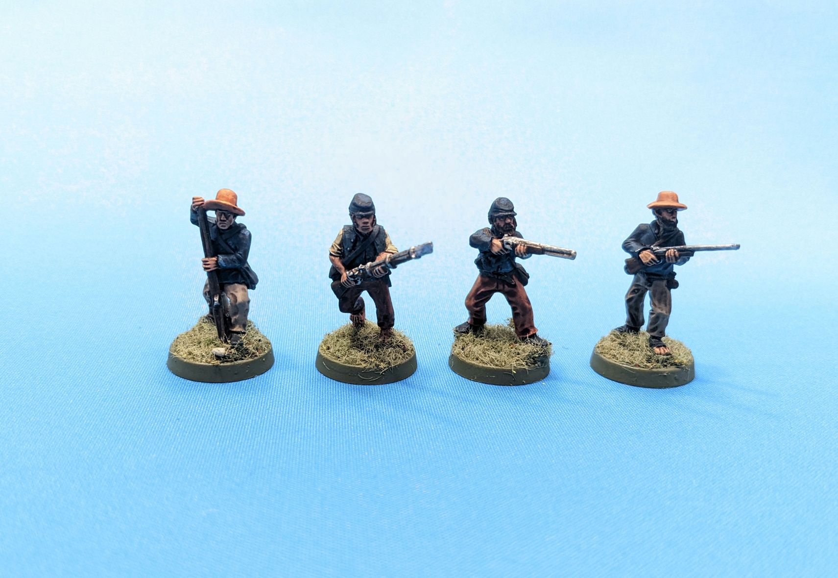 This month I chose to finish up some ACW guys who had been kicking around my desk for a long time. These are a mix of manufacturers and both Confederate / Union guys. I mostly just wanted to get some cool poses done for mixing in with skirmishers.