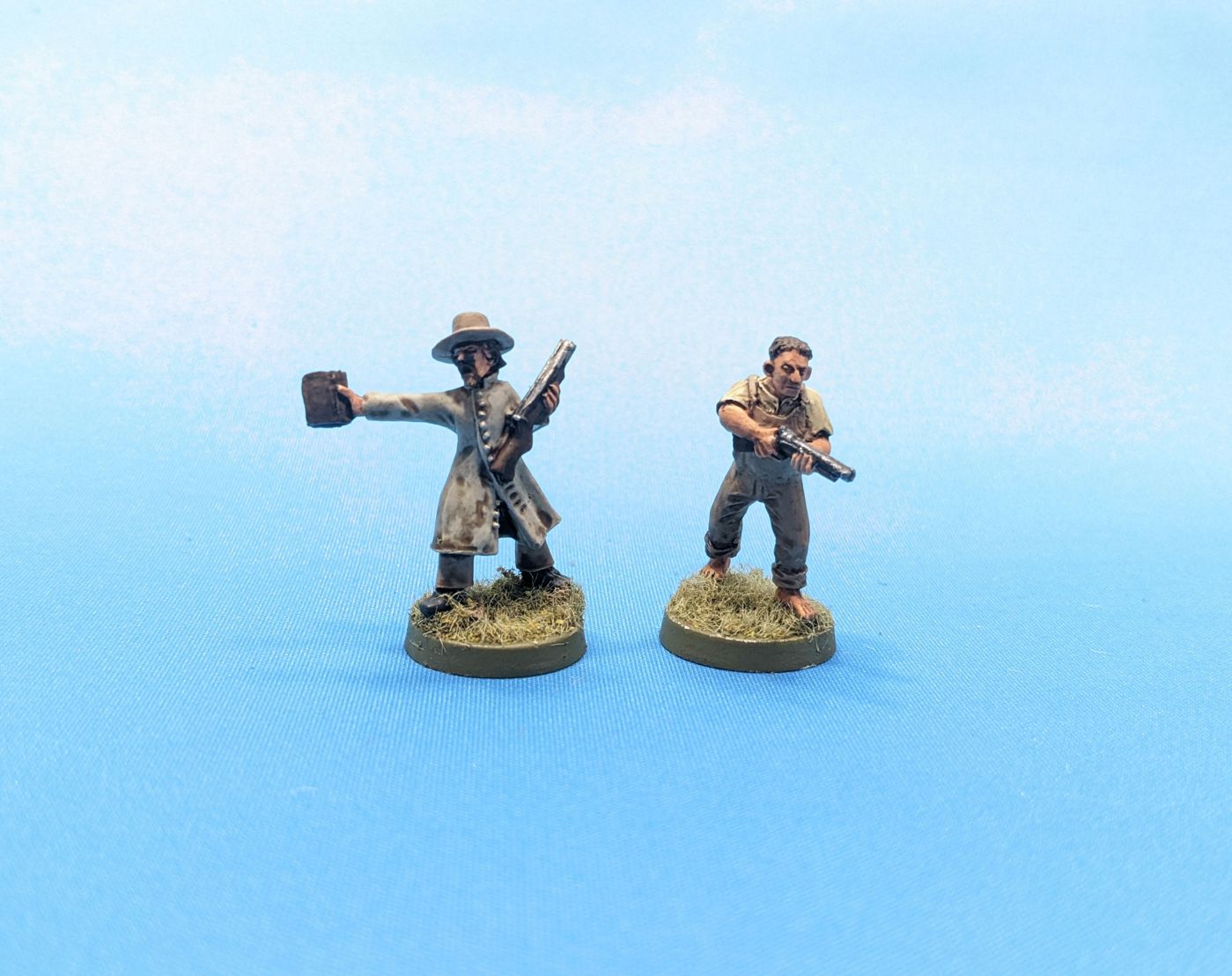 The guy on the left is definitely from Dracula's America - a preacher that will work as a holy man for Sharp Practice. The guy on the right definitely has the 'Deliverance' vibes and came from the bushwhacker set. Really like the crisp details on the minis that make it easy to paint.