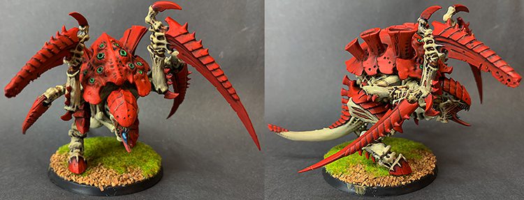 Caption: PierreTheMimeTo maintain general model progress, I've got a pact going with another player to paint models from armies I'm trying out that I don't already have painted. This last week I completed another Carnifex/Screamer-Killer to fill out the large pile I've been fielding lately. 9th Edition has given them a bit of a new life, at least for barebones units--I've regularly fielded 5 along with Old One Eye for a new spin on "distraction Carnifex".