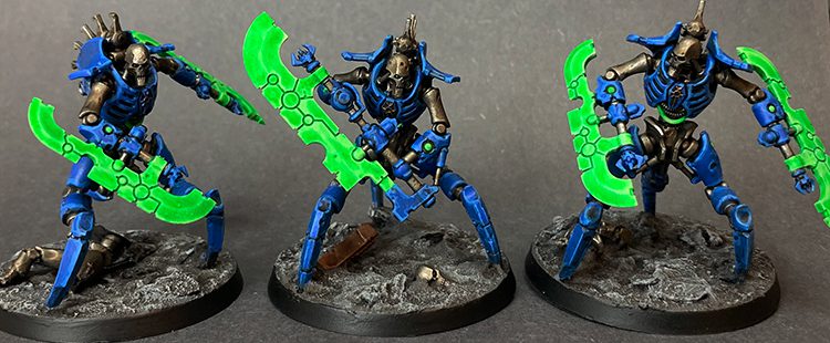 I've started painting these using my old paint scheme but I wanted to put more attention into the glowing bitz than I used to. I recently picked up a large bottle of Hexwraith Flame prior to the release announcement of Tesseract Glow, so I'm using that instead which is giving it a very bright green pop and makes them a little unique amongst the large swathes of TG models.