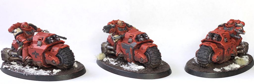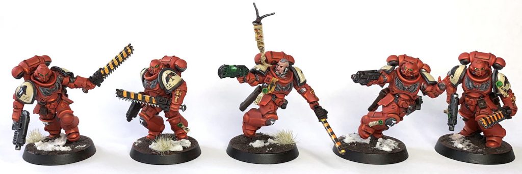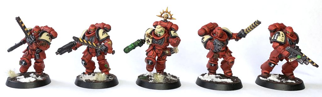 It's been a slow month for me, with most of the stuff painted here being largely done in July and then finished off in early August. As well as ever-more Crimson Fists, I've also been painting a few Blood Angels, my original chapter back in 3rd edition - 9th is the time I'm finally going to get my half-formed BA army into being a real thing that can go on the table, and I think they're a step up in painting compared to the Crimsons. I have a bunch more stuff in the works, including finishing off two Impulsors which are literally just waiting for a highlight and some weathering, but being able to game again has slowed things down - it's fun to be back playing after a long break!