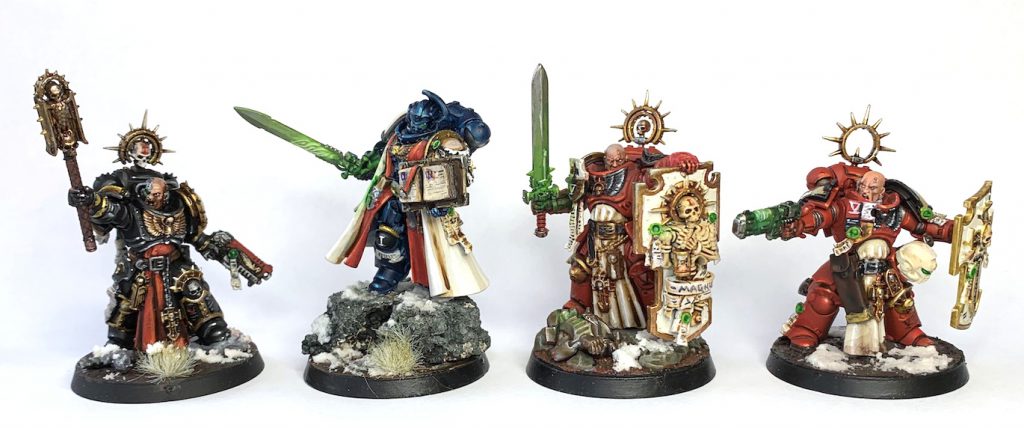 Heavy dest... Ok I give up. My plan was to paint the Necrons, but all those robed Marines and a recent stint of Dawn of War II again pushed me to paint these guys first (maybe they stole the Necrons, there sure is a lot of glowing green on those Blood Ravens). I also grabbed a squad of Eliminators and a Librarian just to add some more variety and to bring the total points up to about 1300.