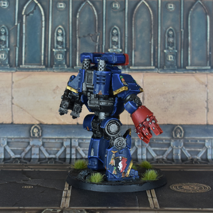 This model is technically a conversion, since I had to chop down the original pauldron so I could slap a moulded one on top. Here's some alternate angles of death: