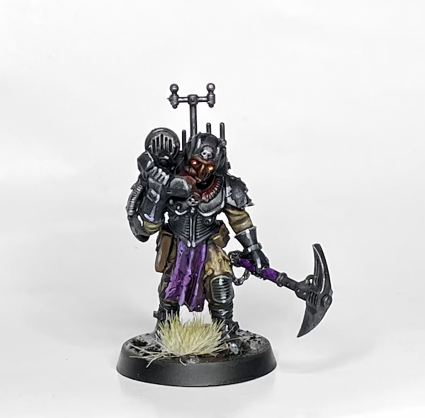 Painting five Intercessors seemed like it might be repetitive, so I added flavour in the form of two specialists: a helix adept and a tech adept. These are pure headcanon and have no effect in-game, of course, but I think they have charm. If you want to see more photos/angles, there's some over on the Beard Bunker.