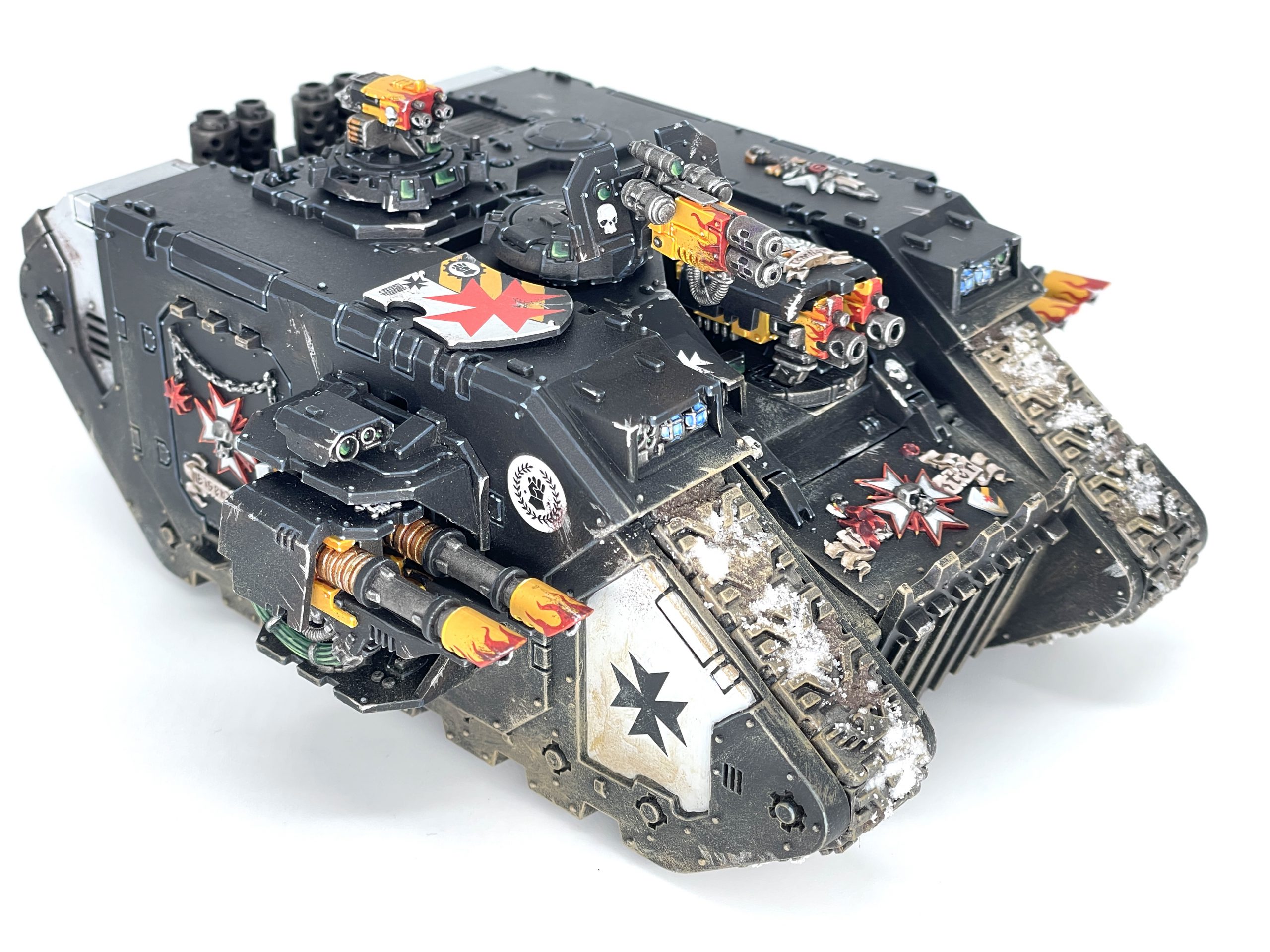 Black Templars Land Raider. Credit: SRMI have some affliction where every 3-4 years I need to paint a Land Raider, and my time was up. You don't realize how far models have come until you paint something old like this - 1999 - and even with the softer details and gaps in assembly, I still had a pretty decent time with this one. I fully magnetized the sponsons and even hid some magnets under the snow and gunk on the treads so I can pop on the frag launchers to turn this into a Crusader or Redeemer. Let's see if those get cheaper soon! Regrettably, triple Land Raiders doesn't give me the board control I want, but I'm happy to have another big stupid shoebox to push around.