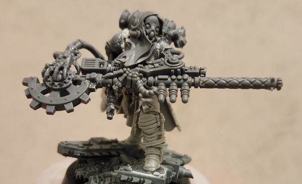 The Ash Wastes are unkind to the Omnissiah's blessed. Credit: Carter KachmarikIn a similar vein, because I'm aiming to try a Rad Zone Cohort list with Dragoons, Disintegrators, and tons of midboard punch, an Enginseer was on the menu for conversions, as outside of SHC it's not possible to grant Feel No Pain to relevant vehicles. This Outlands Beastmaster clearly prefers the company of machines to gribblies now, and given I didn't actually have an axe, an angle-swapped and shorted Manipulus staff made do!