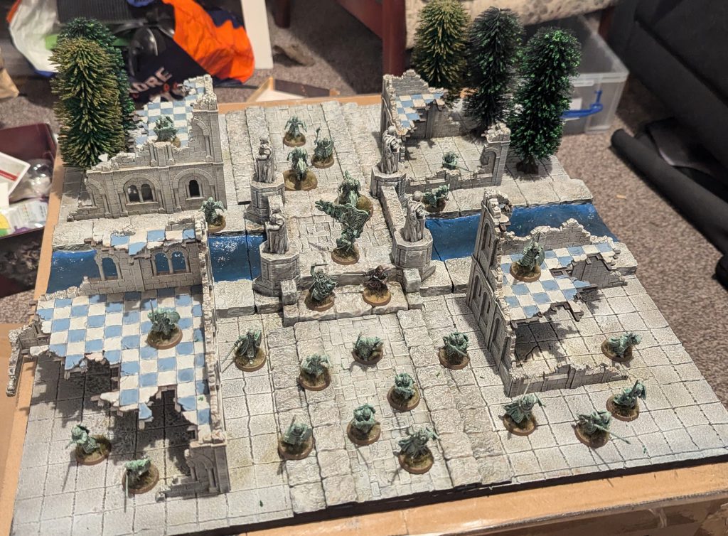 Osgiliath Display Board. Credit: Rich NutterAdding in the Games Workshop Osgiliath terrain and some trees, I think it makes for a nice Osgiliath board and a suitable home for my Return of the King legendary legion. I didn't end up winning, missing out to a beautiful Mirkwood display that incorporated both Elven and Dark Denizens forces, but I had a great time putting it together and showing it off, and the board will be repurposed as a liner for my display cabinet.