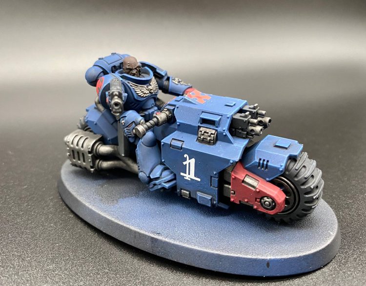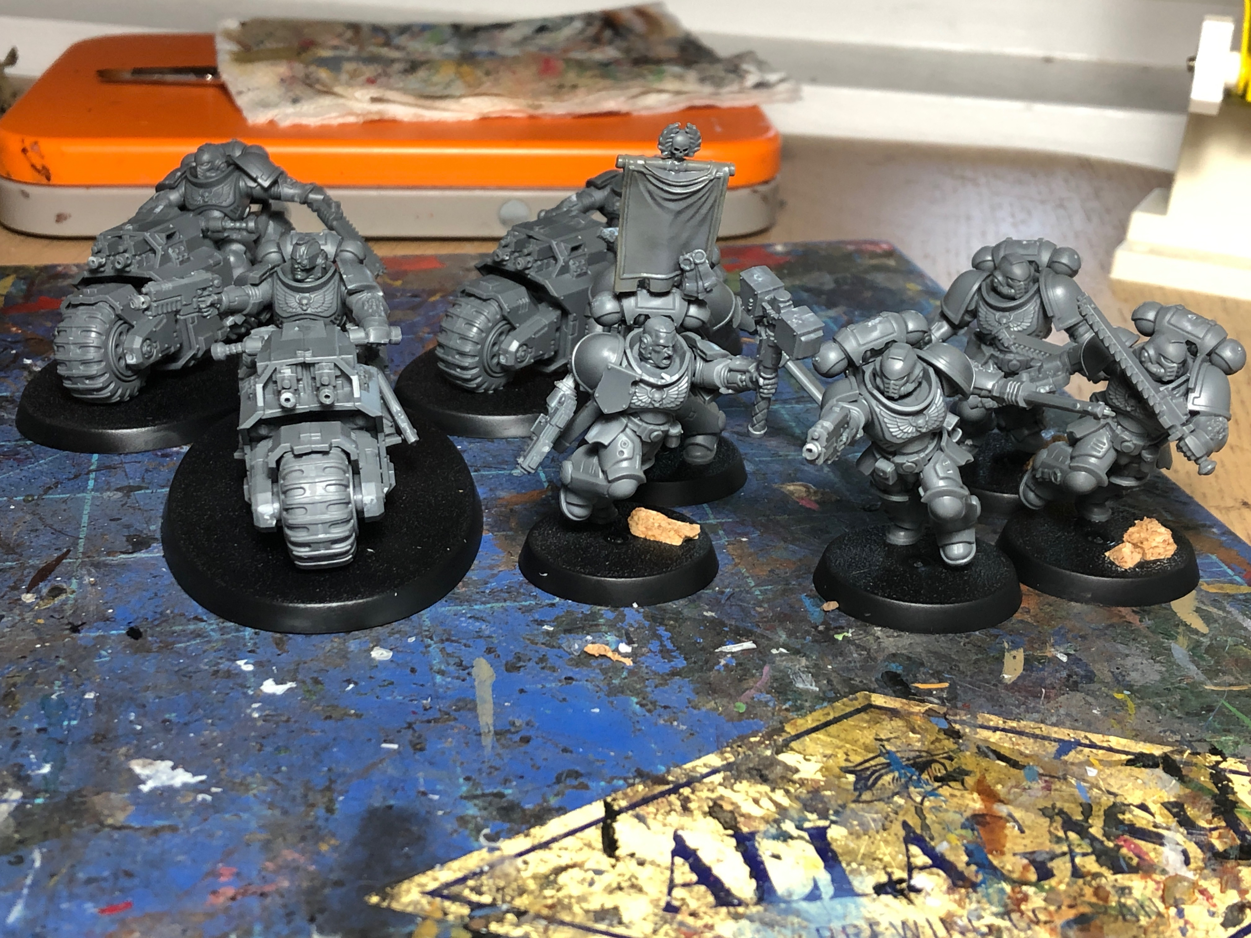 I've found the detail is slightly softer than on the previous plastics, but still extremely good, and everything went together beautifully. My only real complaint is the massive seam on the bikers, which is not the detail I was hoping they'd reproduce from the old 90s ones. You'll also notice I converted the sergeant - I figure since regular Intercessors get the cool melee weapons, assault ones probably will eventually too. If not, my group is chill enough that if I pay the points I'll be fine. I gave him a spare Reiver heavy bolt pistol, a headswap, and a backbanner (as all sergeants should have) and he was ready to go. These boys have been primed blue at time of writing, so expect to see them coming up soon!