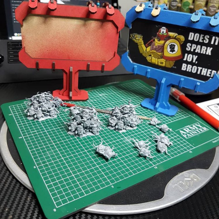 I’m going for a Red vs Blue Team Fortress vibe with some Goonhammer art to personalize it a bit more.
