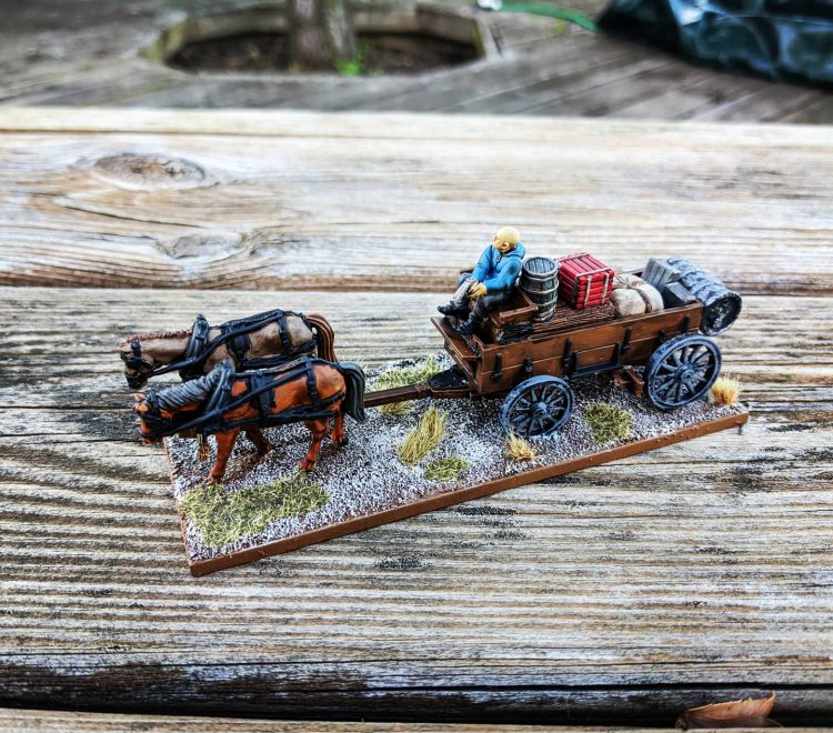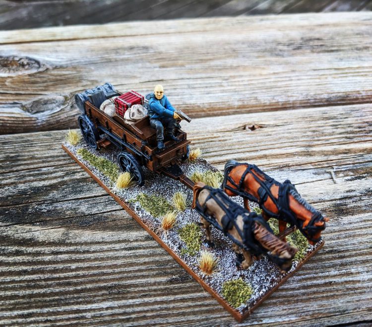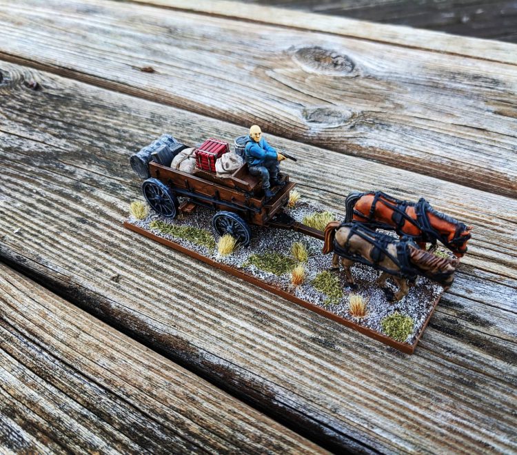I've also wanted to write some specific scenarios for wagons in The Walking Dead. They use wagons all the time to transport goods between the communities - an escort mission would be perfect. I picked up a Knuckleduster wild west wagon, converted the driver with an upper half from a Hasslefree model, and then added some boxes and stowage from all kinds of sources.