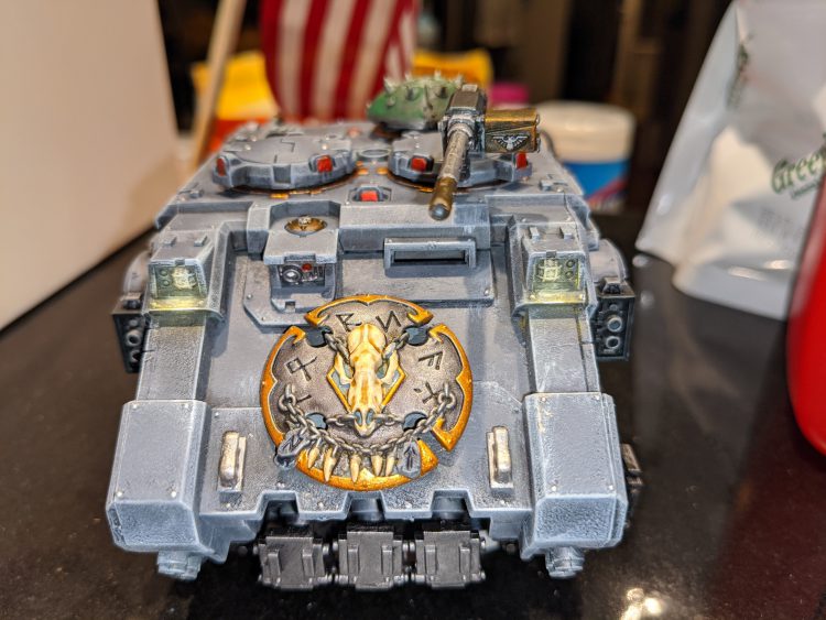 With those models finished, I wanted to get away from painting various shades of grey. So I reached into the backlog, and decided to paint up a Callidus Grav Tank I picked up at NoVa 2019.