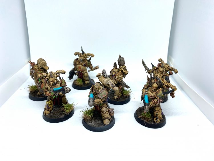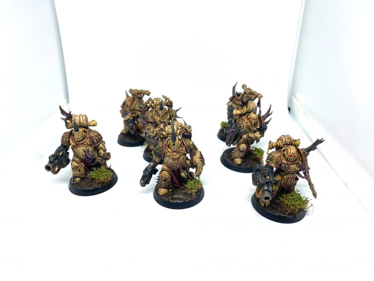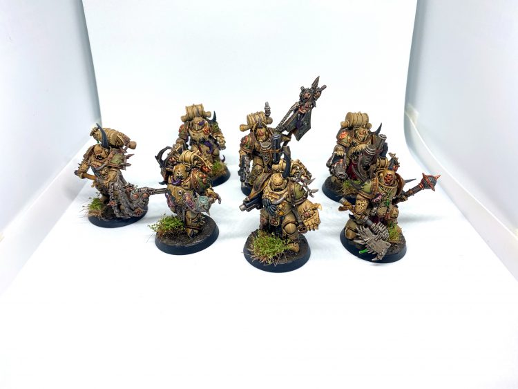 And of course I needed troops too, Plague Marines are the cornerstone of any Death Guard army to me so I wanted 3 unique units, a close-quarters unit with 2 plague sprayers and a mess of combat weapons, a triple plasma squad, and a mid-field double blight launcher unit with a back-up power fist just in case. And of course the units just HAD to be in 7's; anything else is sacrilege to Papa Nurgle.