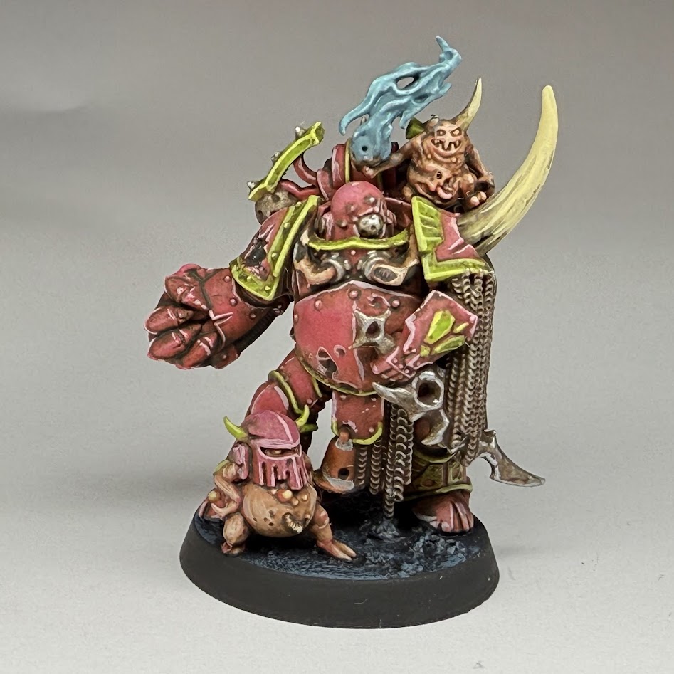 A varied month for me. Some real world problems destroyed the last week or so of the month, but I did get through a few bits before that.First of all, I finished a test model for a Death Guard army. I've always wanted to do some in a bright pink and green scheme, but was at a bit of a loss for how to do it efficiently. My solution is to base with Convict Orange spray from Colour Forge, before a zenithal of Rogue Pink. This spray can solution does a lot of the work. From there it's some basecoats on the trim and other bits, gloss varnish, streaking grime, matt varnish, and honestly that's mostly it. I've done some highlights for the extra pop.